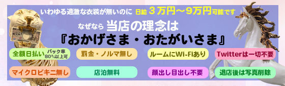 当店は上記のようなお店には該当しませんし、お客様に心身ともに満足していただくのがコンセプトとなりますので、しっかり講習を受けてスキルを付けてからデビューしていただきます。