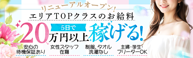 | 給与 | ※未経験者大歓迎‼ 初めての方に最適な店舗型 待機時給保証 ①AM11:00〜19:00迄 1,500円 ②PM19:00〜23:00迄 2,000円 ③PM 23:00〜last迄 2,500円 と手厚い保証ですが、実は殆ど保証した事が有りません笑 何故なら当店は忙しいから保証する必要が無いのです。 それでも心配な貴女の為に安心の時給保証をお約束致します。 条件 (Twitter更新) ①②5時間以上待機 ②③ 4時間以上待機 ※移籍を考えている方 経験者の方優遇致します。 フリーでも60%バック可能! 実質バック ☆60%~70%以上の高バック率! (5%ポイント還元+オプションフルバック) ※講習員(セラピスト兼用可)、受付業務 募集 高待遇でお迎えします。安定した収入を得たい貴女へ 指名料5,000円以上フルバック可能‼︎ 指名のお客様が多数いる、施術又は容姿に自信のある方はご自身で指名料金を決めて頂いて結構です。 (例)指名料5,000円フルバック 本指名の場合コース料金60%~70%以上バック オプションフルバック! 雑費無し‼︎ ※未経験者大歓迎‼ もちろん未経験者も歓迎してます。 万が一お仕事につけなかった場合は保証が有りますので安心して働いていただけます。条件あり 女性スタッフによる丁寧な講習があるため安心です! 派遣型やマンションルーム型の様な危険な思いを貴女にさせません 店舗型の個室店ならではの安全性があります! セラピストさん大募集!! 実質バック ☆60%~70%以上の高バック率! (5%ポイント還元+オプションフルバック) 【完全日払い制】 70分の歩合 7,500円~10,000円 100分の歩合 10,000円~13,000円 120分の歩合 12,000〜16,000円 本指名フルバック 1000円〜5,000円以上可能 ※ 本指名料の設定は貴女自身が決めて頂いて結構です。 メンズエステ店舗受付女性スタッフ募集 仕事内容 ①店内清掃、電話、受付業務 (長期勤務可能な方) 勤務時間 13:00頃〜6時間以上(応相談) 週2日〜6日(応相談) 時給1,100円〜 月給 応相談 ①+②女性講習員 (メンズエステ経験者歓迎 未経験可 指導致します。) 時給+報酬 資格 20歳以上35歳位迄の健康な方 LINEにて連絡がスムーズな方 時間、約束の守れる方 お掃除が得意な方 (メンズエステ経験者歓迎 未経験可) 万が一お仕事に付かなくても、待機補償有り‼︎日給1万円支給! 貴女のご希望を聞かせてください。 |