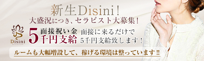 メンズエステ「Disini」は絶対に風俗ではありません。業界では圧倒的高収入と客層の良さが特徴です。マッサージ未経験の方に安心の研修制度やシフトもライフワークに合わせて週1回からOK、などメリットが様々です。「今だけ、金だけ、自分だけ」といった目先の小さなことだけではなく、「今も未来も、お金もやりがいも、自分もみんなも」といったより大きな幸せを掴めるセラピストになっていただきたいと考えています。